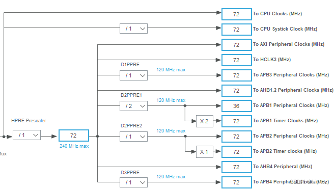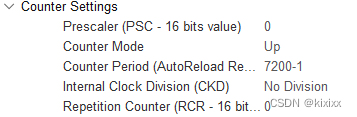 因为我们配置的晶振是72Mhz,所以将psc设为0,arr设为7200-1,可以算出频率10000Hz(72000000/0+1/7200),