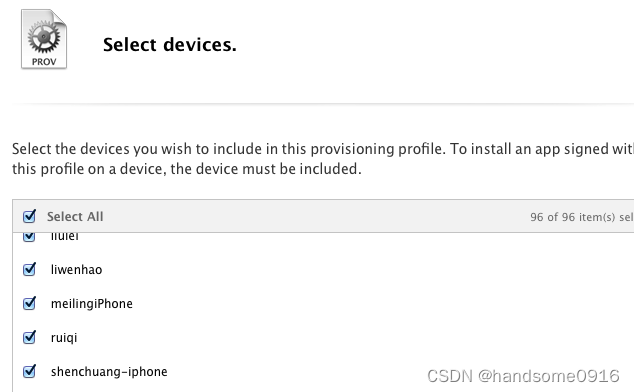 4、ad hoc真机测试类型的profile的创建,创建的过程中,它要求我们选择device