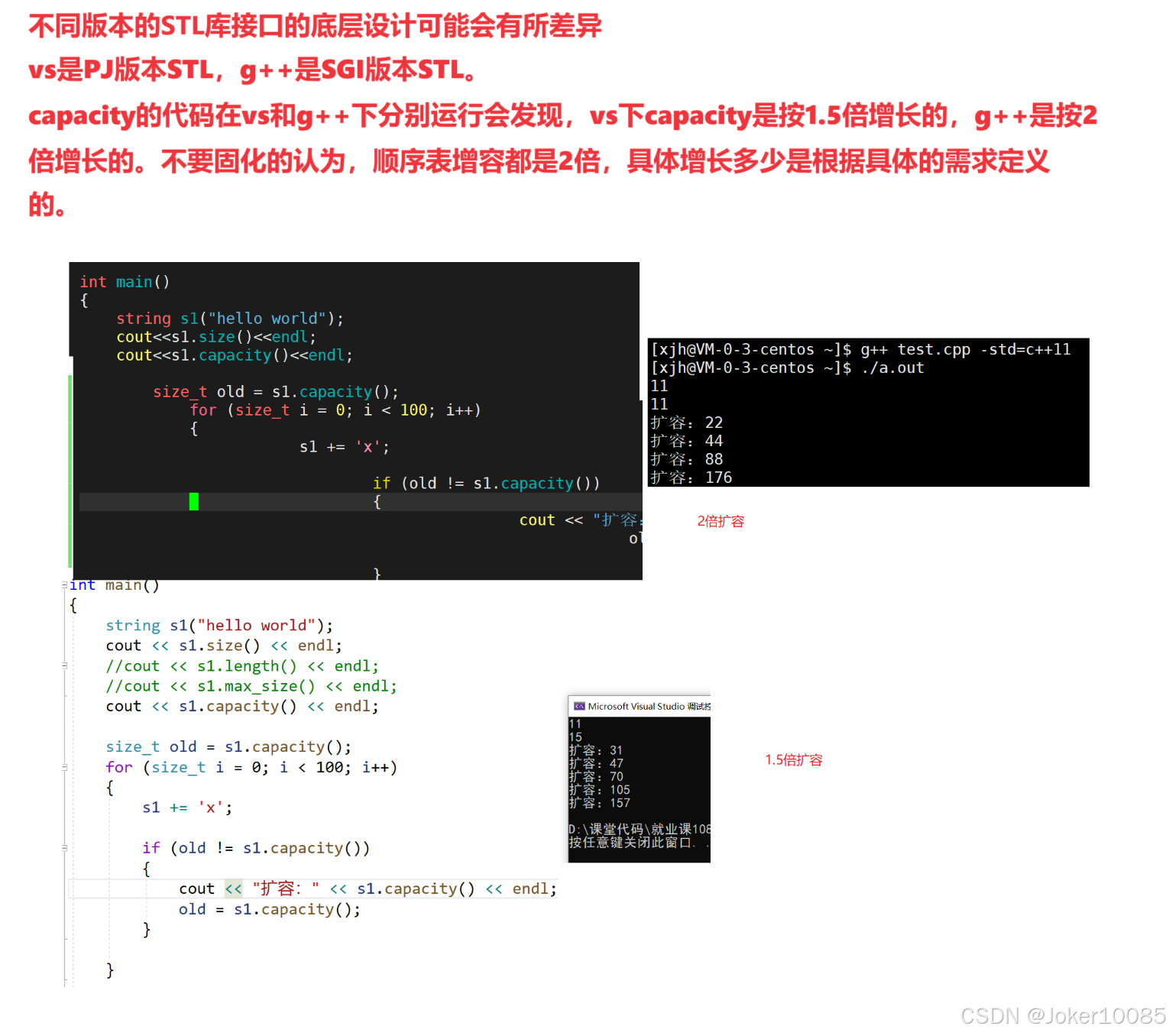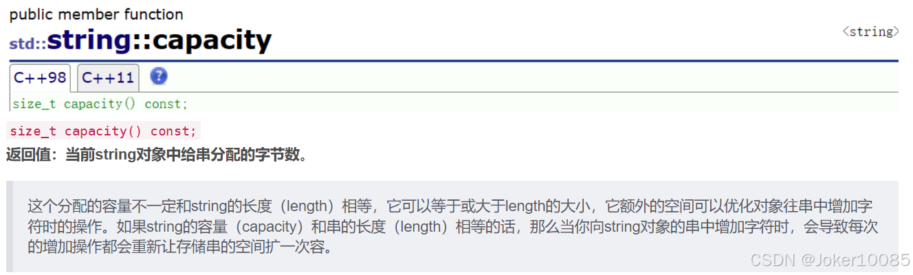 其次:还有一个size_t字段保存字符串长度,一个size_t字段保存从堆上开辟空间总的容量