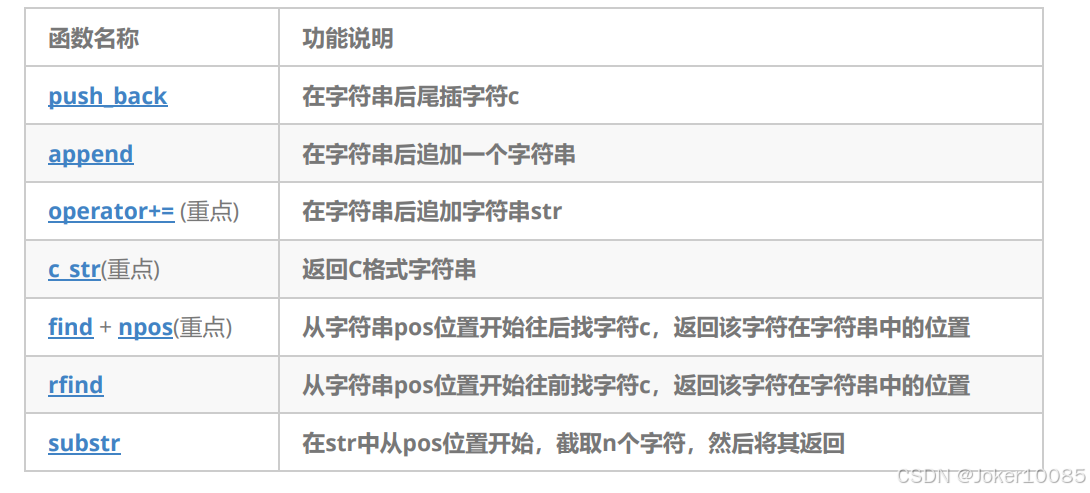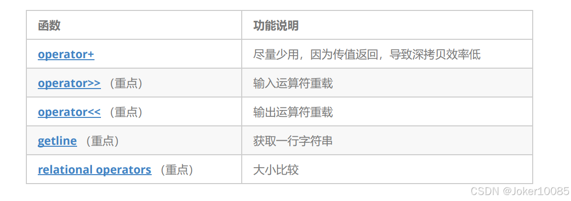 2. 该类的接口与常规容器的接口基本相同,再添加了一些专门用来操作string的常规操作。