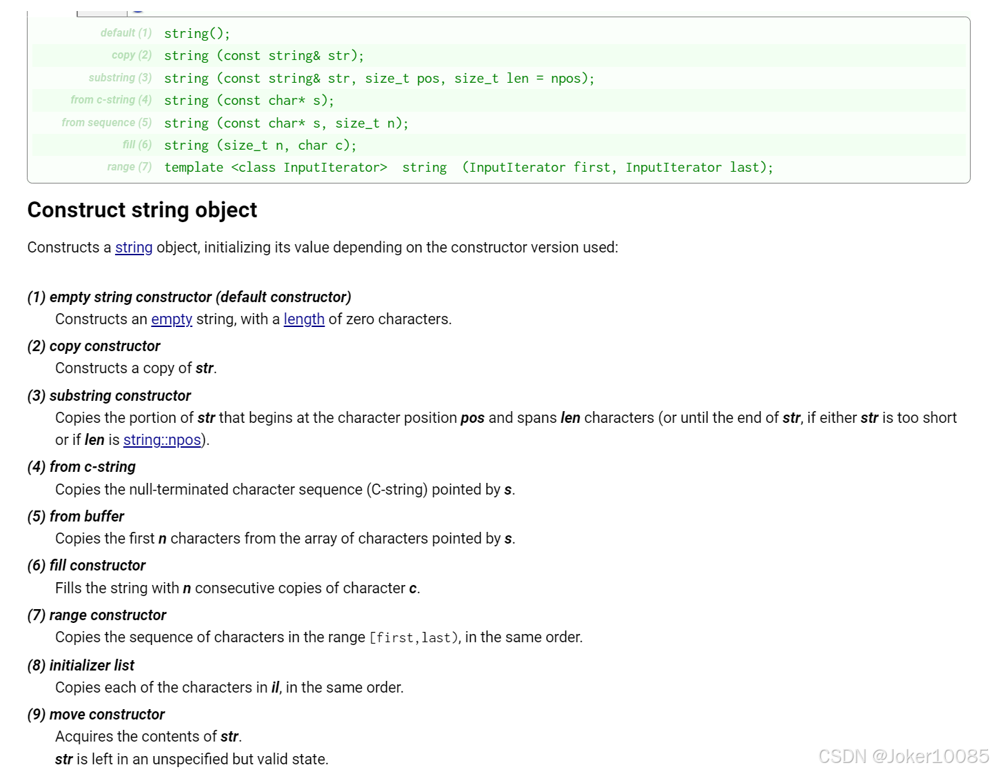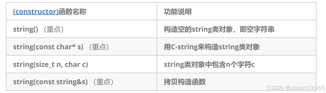 从cplusplus可以查得string类的所有构造函数