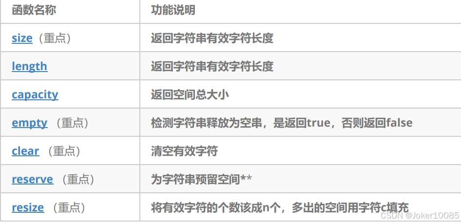 2. clear()只是将string中有效字符清空,不改变底层空间大小。