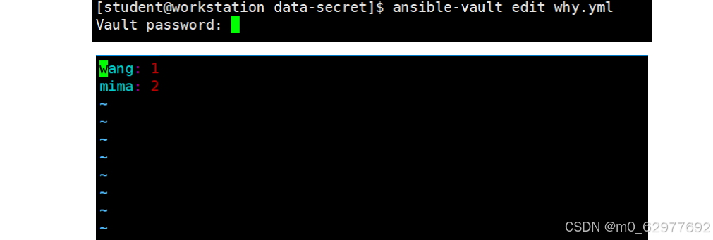 用ansible-vault edit why.yml 查看